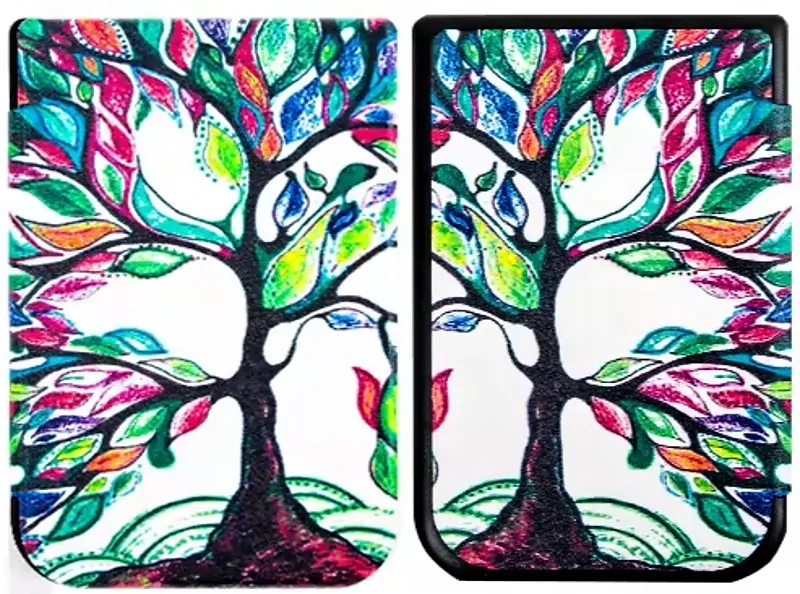 Pouzdro má magnetické zavírání. Celkové rozměry a hmotnost jsou velice kompaktní a téměř přesně kopírují rozměry čtečky. Pouzdro samozřejmě nabízí funkci automatického usínání / probouzení čtečky podle toho, jak pouzdro otevřete nebo zavřete. Přední desky lze otočit o 360° a pouzdro tedy držet pohodlně v jedné ruce. Pouzdro je v motivu Tree s jemnou povrchovou úpravou. K dispozici je široká nabídka dalších barevných provedení.