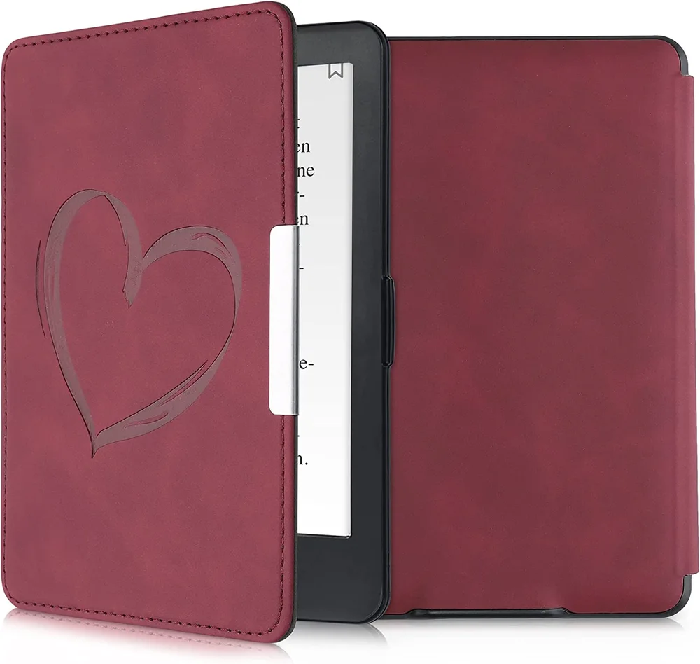 Vlastnosti pouzdra KW MOBILE pro Amazon Kindle Paperwhite 1/2/3, motiv Brushed Heart Dark Red: